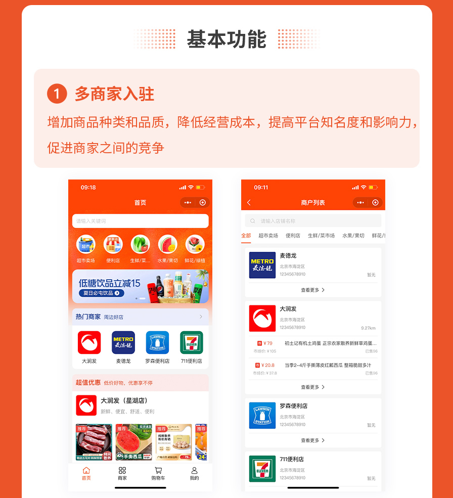 本地商超小程序开发 | 多商户入驻 | 会员管理 | 优惠券 | 营销活动